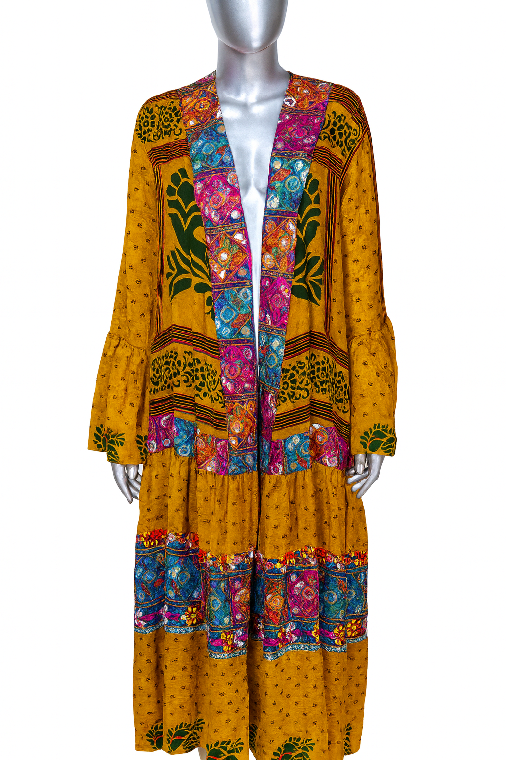 The Amber Mosaic Set pairs a flowing mustard kaftan with striking embroidered details and mirror accents, creating a vibrant patchwork of color and culture. Finished with a tasseled crossbody bag, this set blends effortless boho charm with artisan craftsmanship—perfect for festivals, travel, or everyday statement style.
