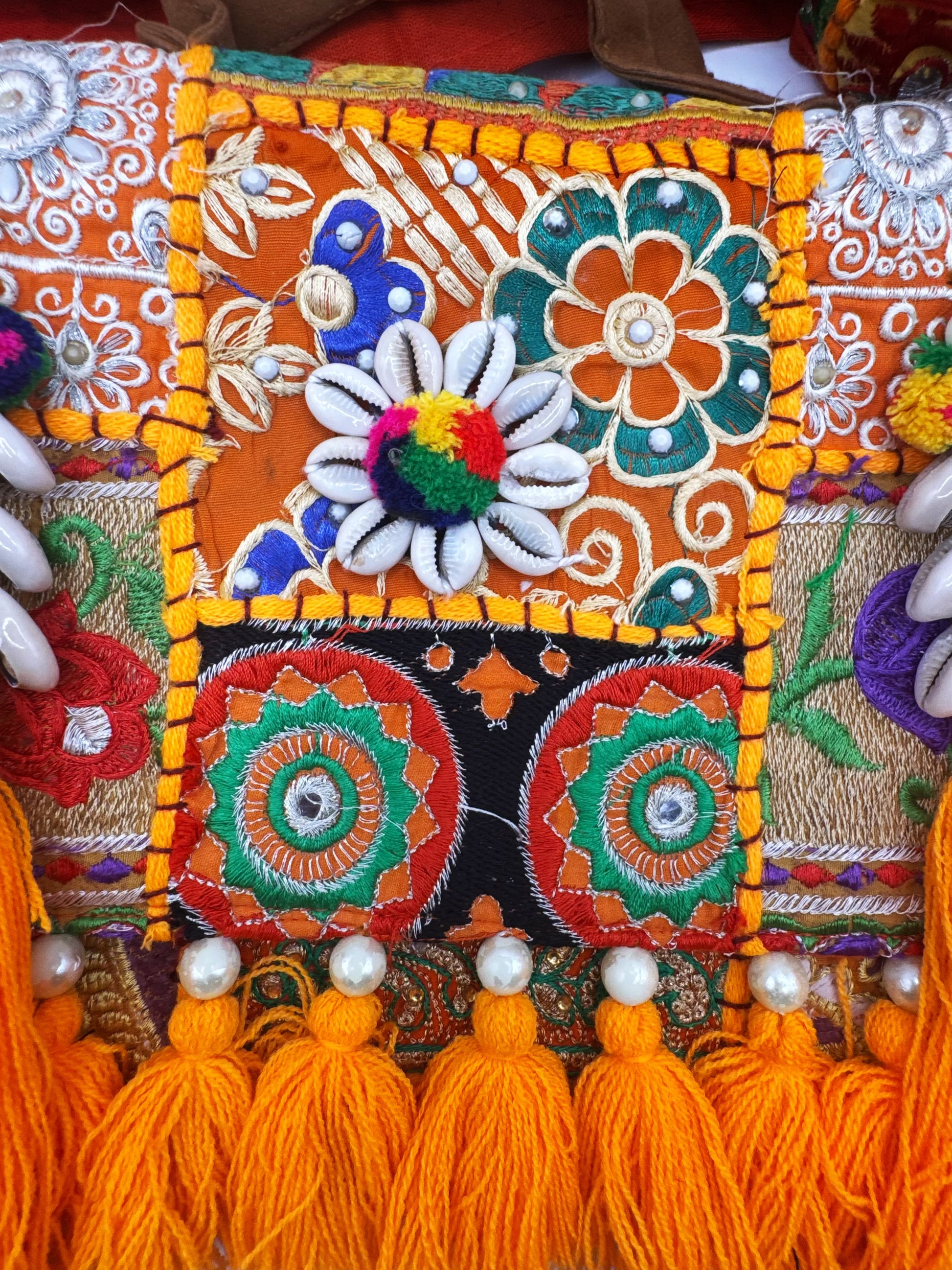 Turn every step into a statement with this bold kaftan and matching satchel. The richly patterned kaftan pairs effortlessly with the handcrafted satchel, adorned with shells, tassels, and vibrant embroidery. Perfect for festivals, beach escapes, or adding boho-luxe flair to your everyday look.